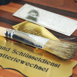 Unser Service geht über Sohlen und Schlösser hinaus: Wir fertigen für Sie individuelle Gravuren an und wechseln im Handumdrehen die Batterien Ihrer Uhren.